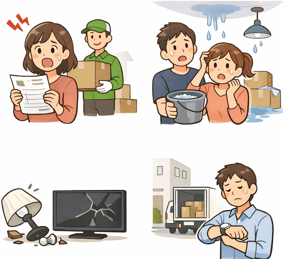 家具や家電の破損、追加費用をめぐるトラブルなど、内容は多岐にわたり、忙しさの中で十分な確認ができないまま問題が発生するケースも少なくありません。こうしたトラブルは、起きてから対処しようとしても大きな負担になることがあります。